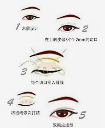 韓式雙眼皮:在設計好的眼皮上開三個不連續的小切口,然后將這三個小切口固定,從而達到雙眼皮的目的。